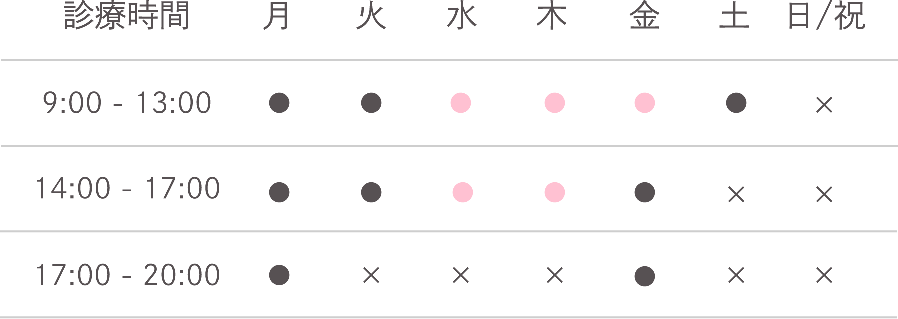※ ピンクになっている時間は女性医師が診療しております。